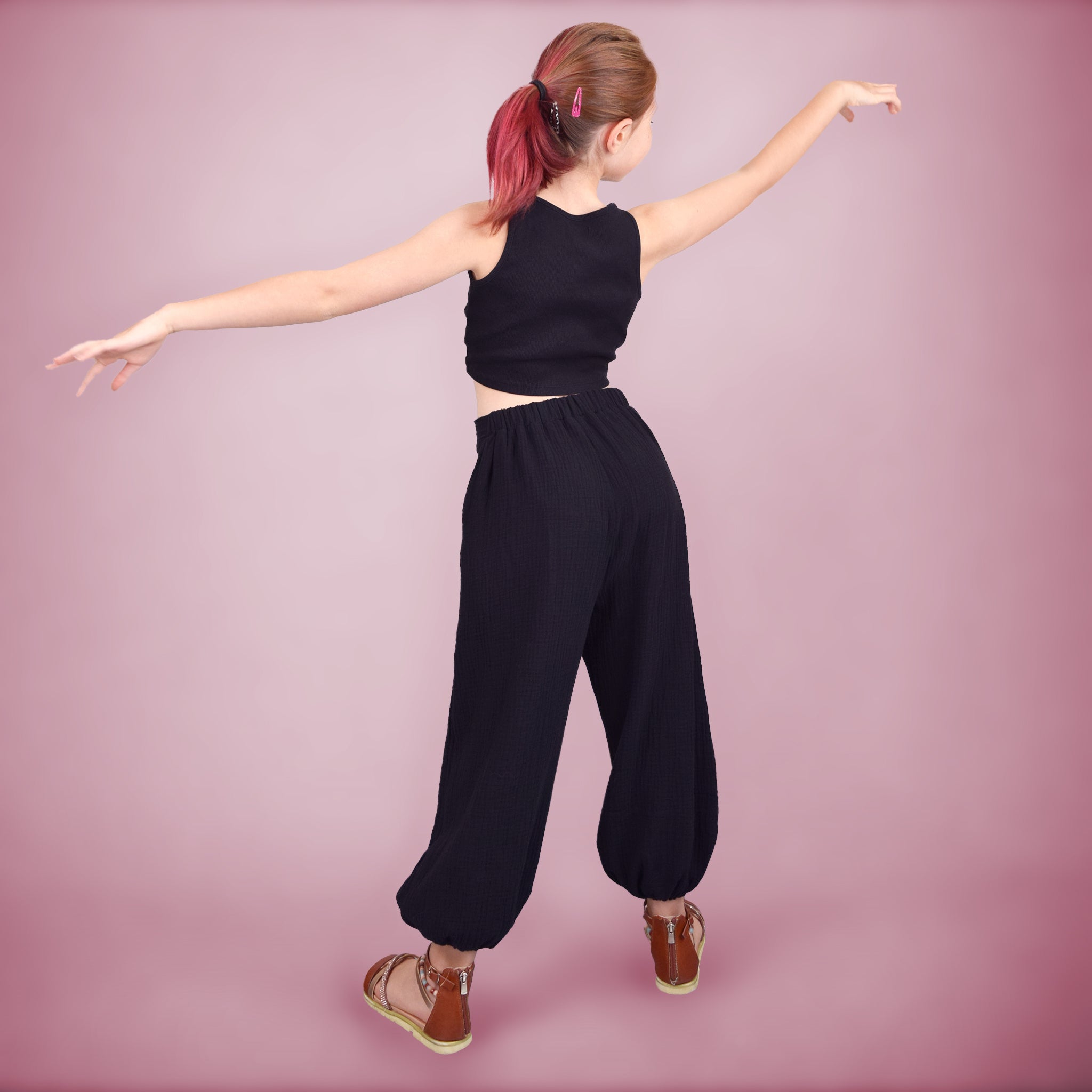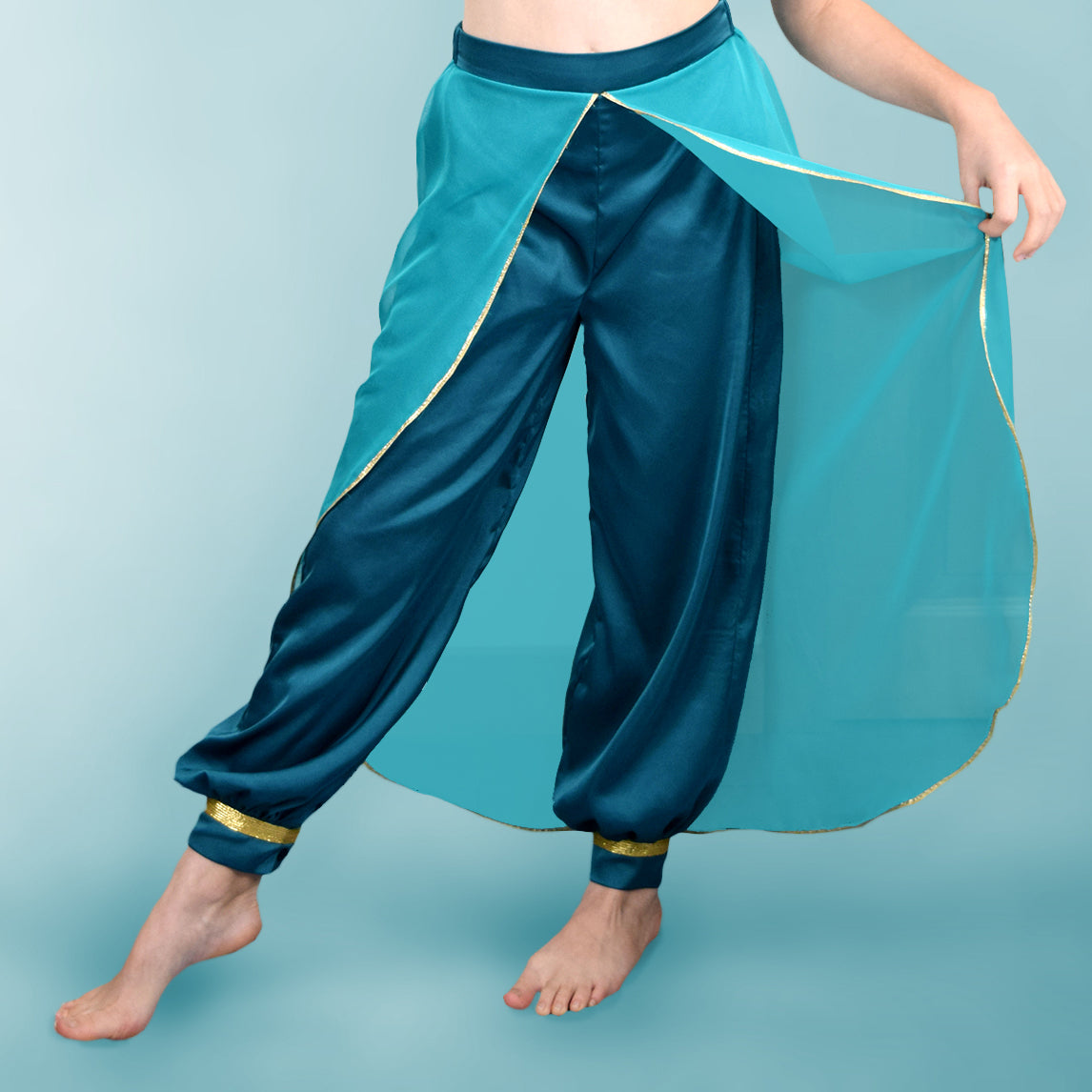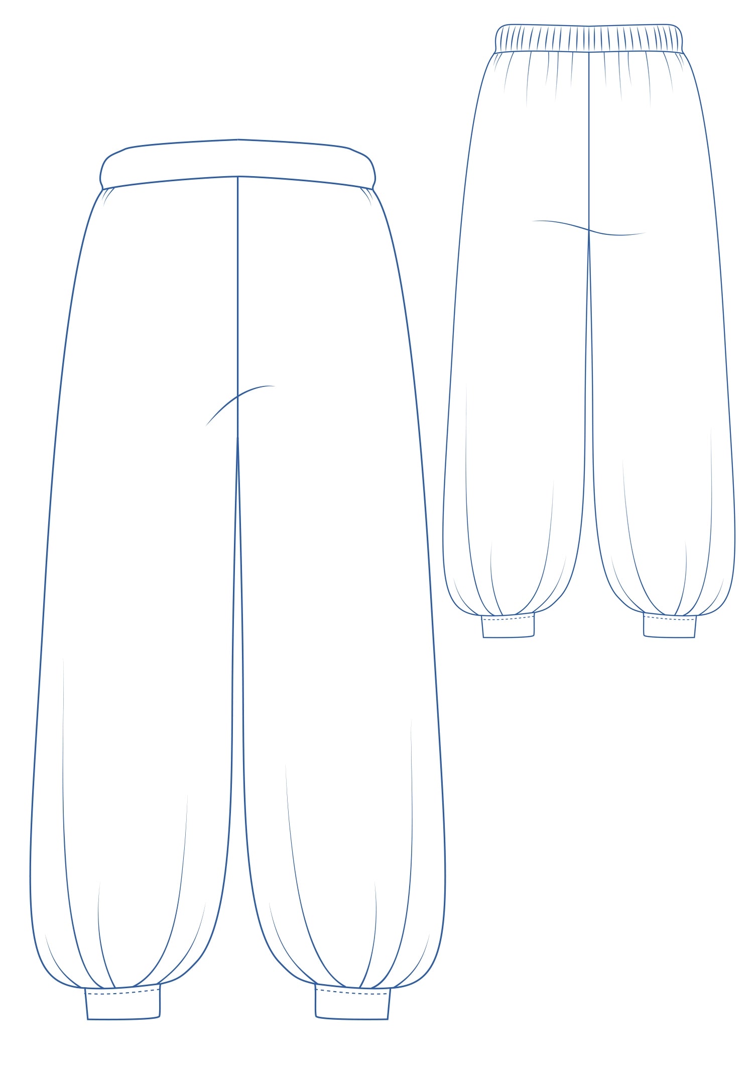 Selon les tissus choisis, il peut devenir un pantalon fluide et décontracté ou une version plus féérique grâce à l’ajout d’un voilage ou de finitions raffinées.